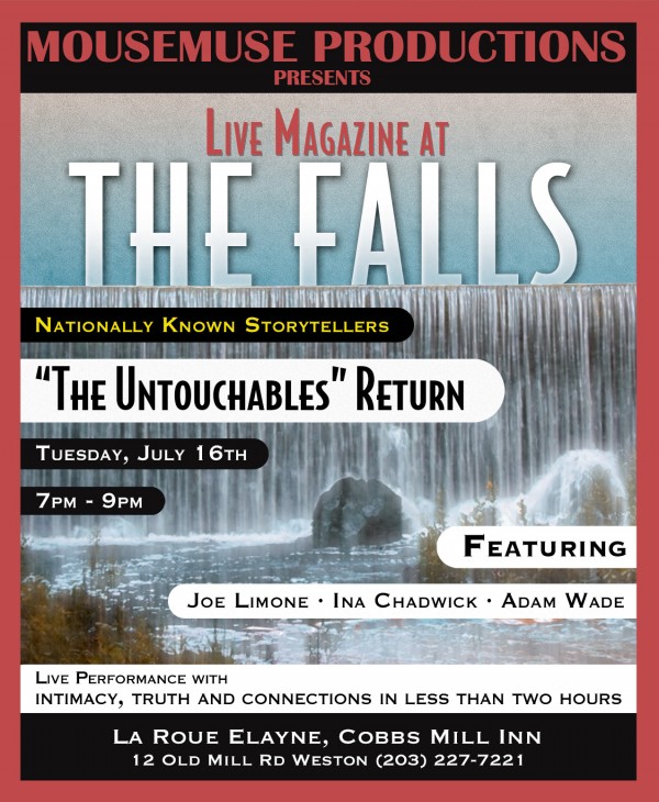 You don’t get a prettier place with a grand performance space as well as a more open booking agent than Elayne Cassara. La Elayne accepted a MouseMuse proposal to launch one of our most dynamic ideas to date. “Live Magazine at the Falls.”